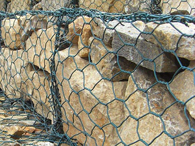 包塑格賓網(wǎng)(綠格網(wǎng))是將不腐不磨高強的低碳高鍍鋅鋼絲或10%鋁鋅稀合金鍍層鋼絲(或同質(zhì)包覆聚合物鋼絲),由機械將雙線絞合編織成多絞狀、六邊形網(wǎng)目的網(wǎng)片,其雙線鉸合部分的長度應(yīng)不小于5cm,以不破壞鋼絲的防護鍍層。綠格網(wǎng)可根據(jù)工程設(shè)計要求組裝成箱籠,并裝入塊石等填充料后連接成一體,用做堤防、路基防護等工程的新技術(shù)。如果在低碳高鍍鋅或10%鋁鋅稀合金鋼絲表面包覆上一層PVC或者PE(不可采用其他聚合物),其成品結(jié)構(gòu)將具有不生銹,不靜電,不老化,不腐蝕等特點,能抵抗海水或高度污染環(huán)境。