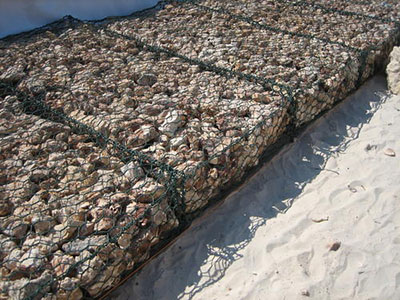 格賓網(wǎng)是一種利用機(jī)械將特種鋼絲編織成雙絞線和蜂窩網(wǎng)孔的新型結(jié)構(gòu)。根據(jù)工程設(shè)計(jì)要求,將其切割、設(shè)計(jì)、組裝成籠子,并裝入石材等填料形成整體。它作為一種新的防護(hù)堤防和路基的技術(shù)。它具有加固堤防和沖刷的功能。