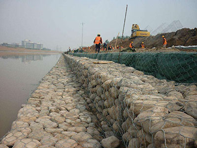 高爾凡雷諾護(hù)墊是將不腐不磨高強(qiáng)的低碳高鍍鋅鋼絲或10%鋁鋅稀合金鍍層鋼絲(或同質(zhì)包覆聚合物鋼絲),由機(jī)械將雙線絞合編織成多絞狀、六邊形網(wǎng)目的網(wǎng)片,以形成自透水的、柔性的、生態(tài)的防護(hù)結(jié)構(gòu).也被稱為生態(tài)石籠網(wǎng)。