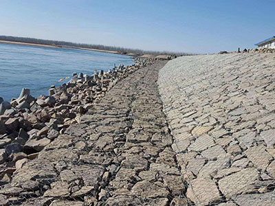 雷諾護(hù)墊也叫石籠護(hù)墊,格賓護(hù)墊,是指由機(jī)編雙絞合六邊形金屬網(wǎng)面構(gòu)成的厚度遠(yuǎn)小于長(zhǎng)度和寬度的墊形工程構(gòu)件。雷諾護(hù)墊中裝入塊石等填充料后連接成一體,成為主要用于水利堤防、岸坡、海漫等的不沖刷結(jié)構(gòu),具有柔性、對(duì)地基適應(yīng)性的優(yōu)點(diǎn)。
